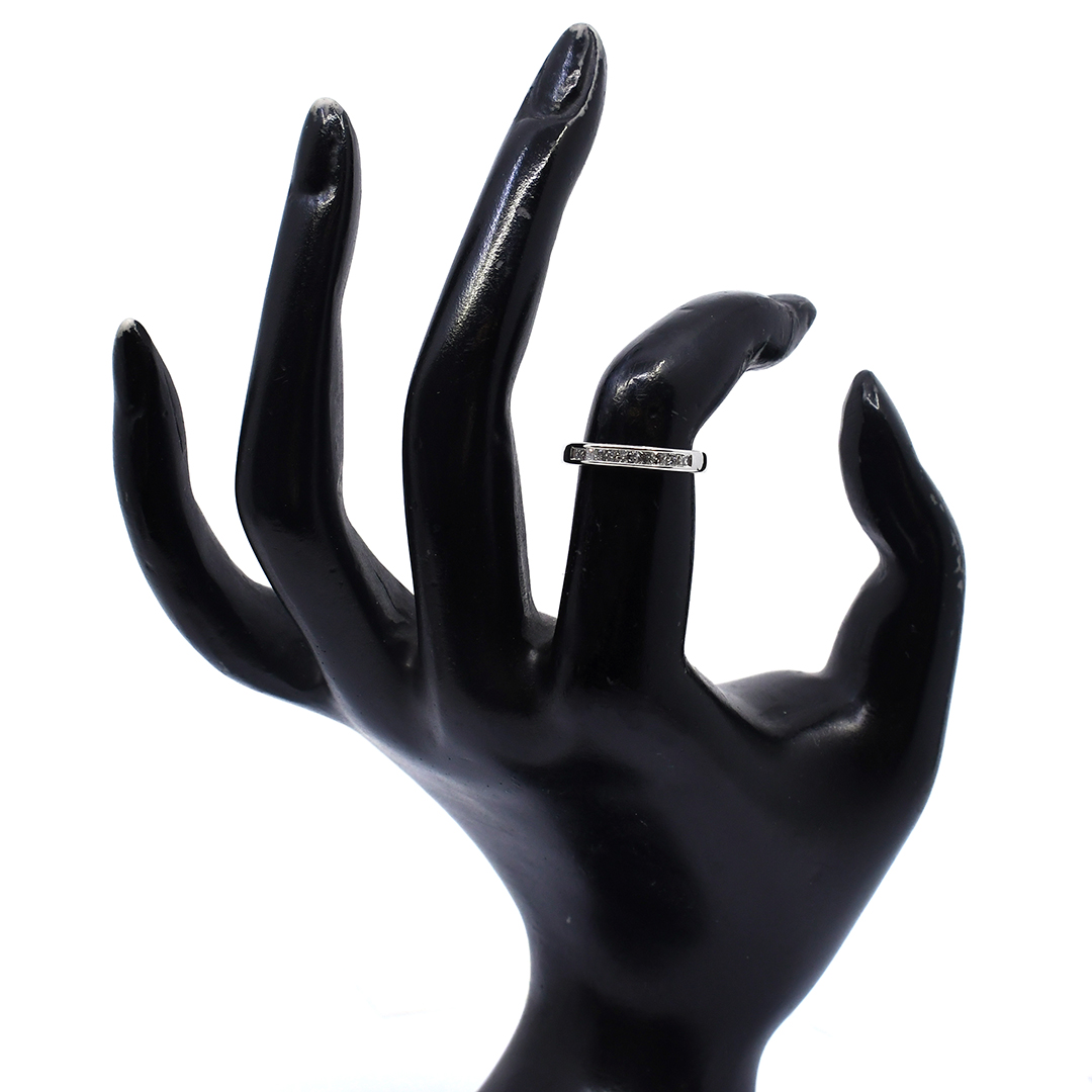 14K White Gold Ladies’ Ring with Half, Round Cut Diamonds