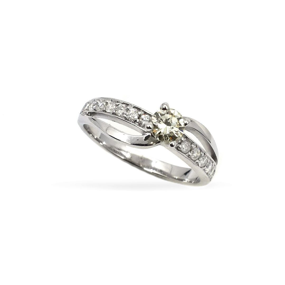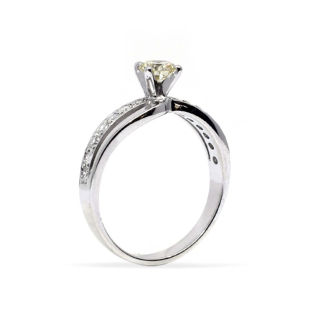 14K White Gold Ladies’ Ring with Round Cut, Accented Diamonds