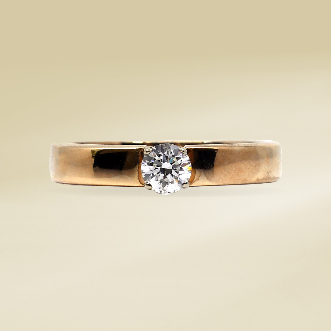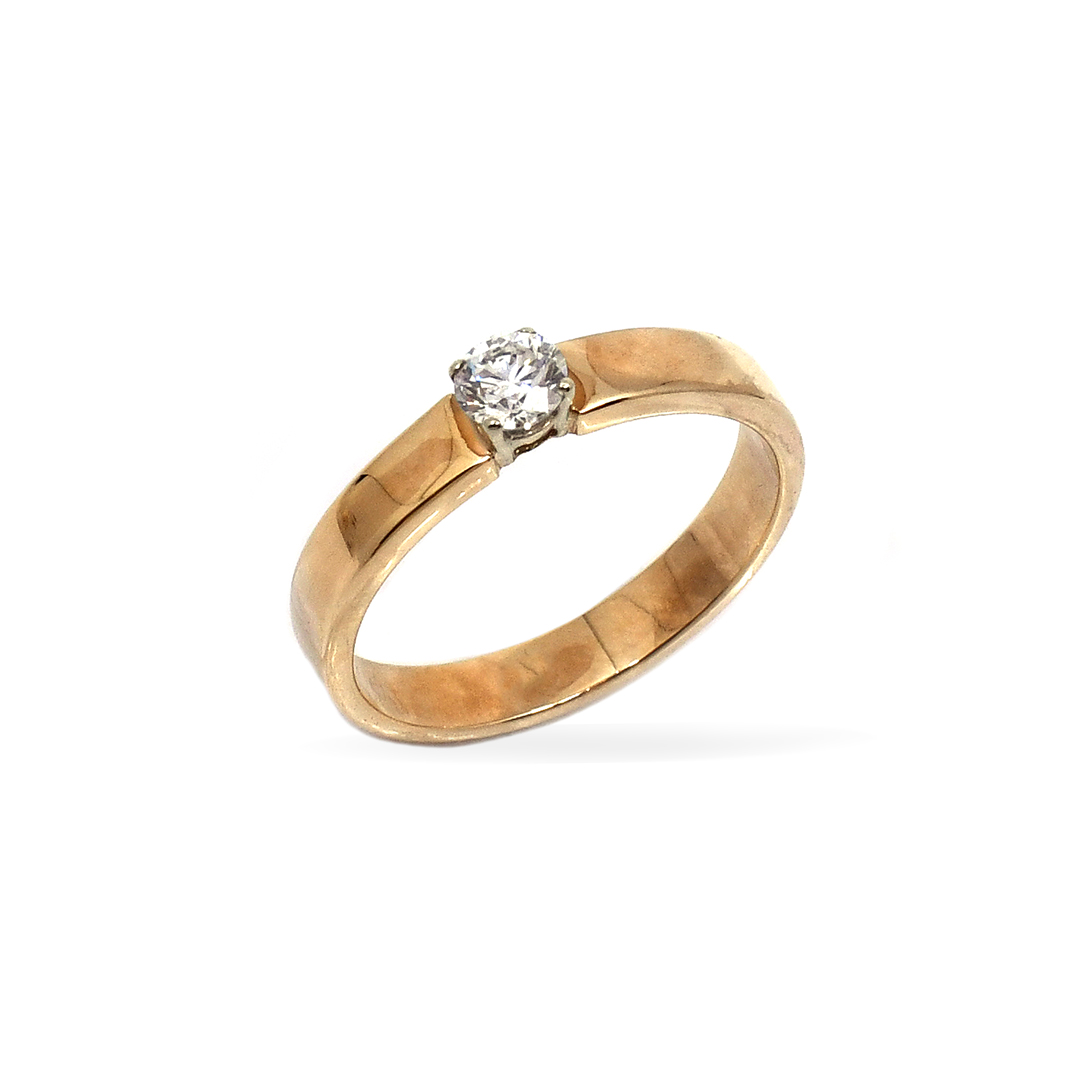 14K Yellow Gold Ladies’ Ring with Round Cut and Single Stone Diamonds