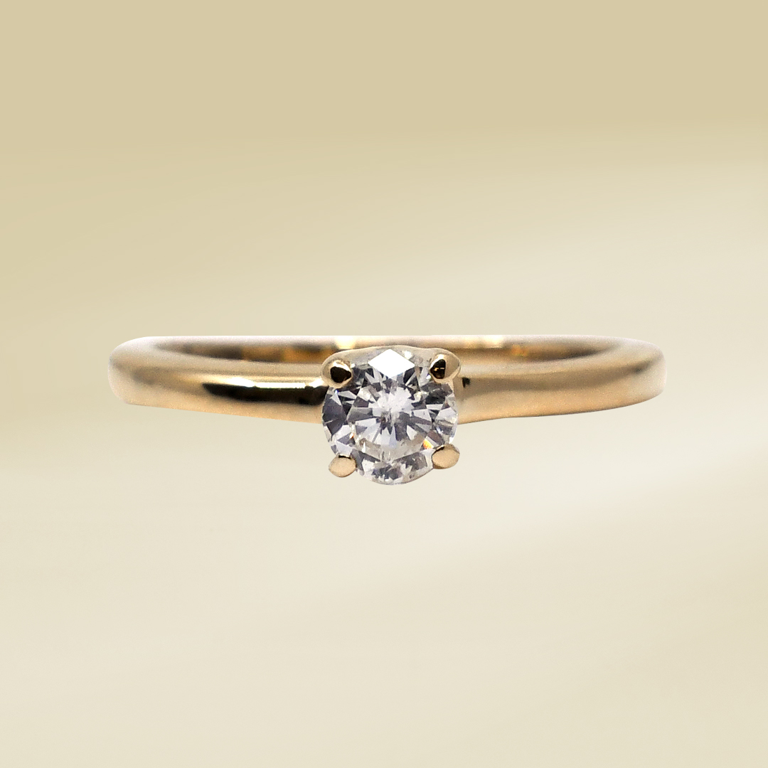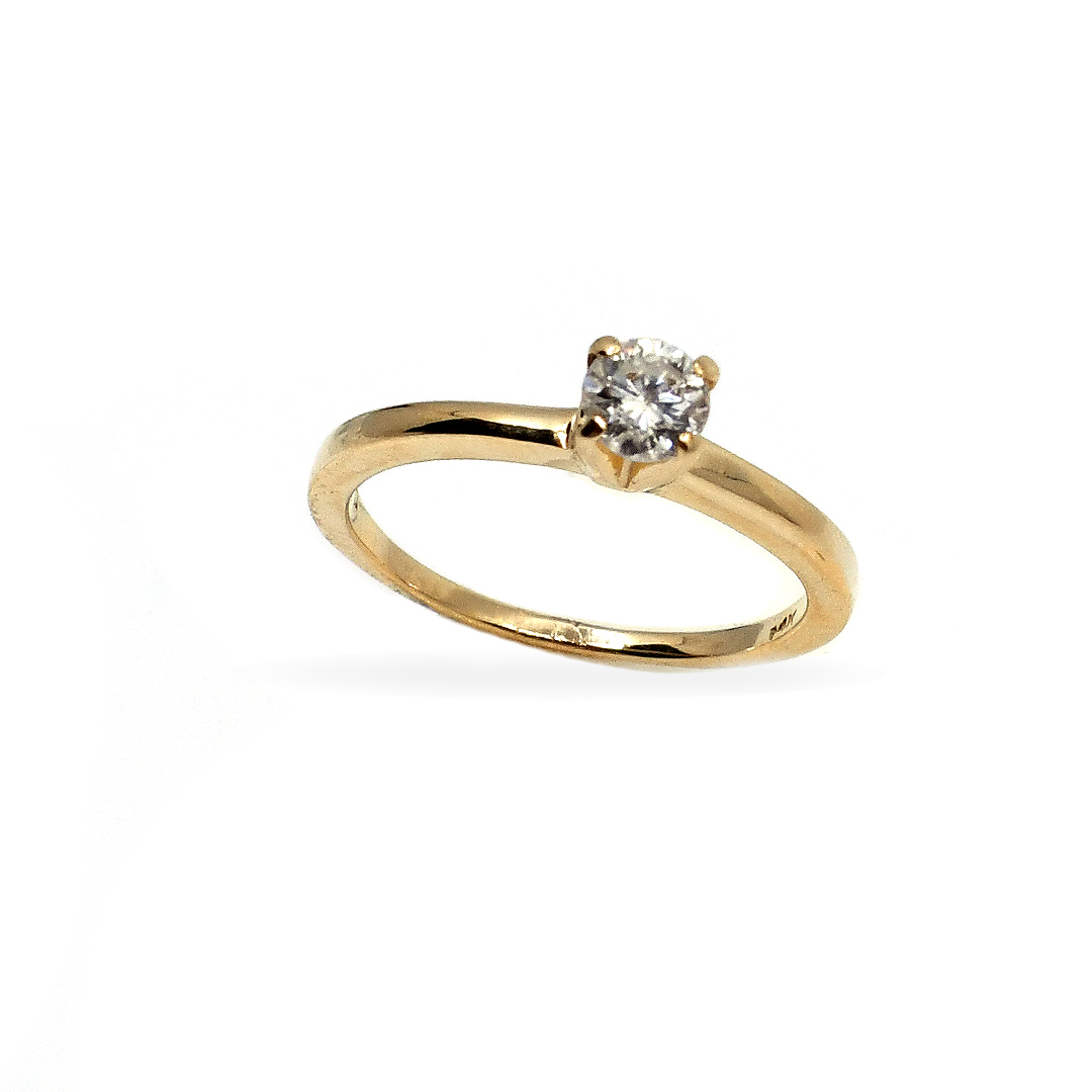 14K Yellow Gold Ladies’ Ring with Round Cut, Single Stone Diamonds