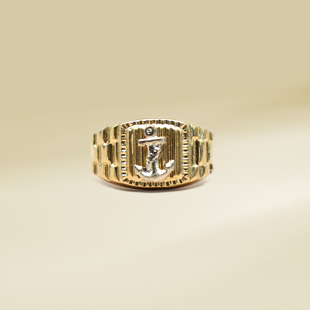 18K Two-Tone Anchor Design Gents’ Ring