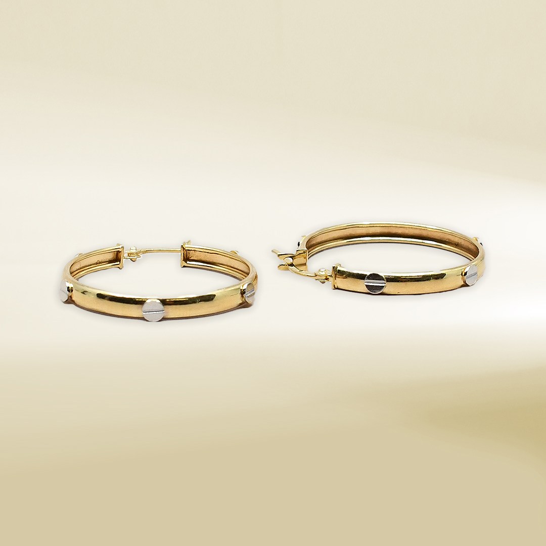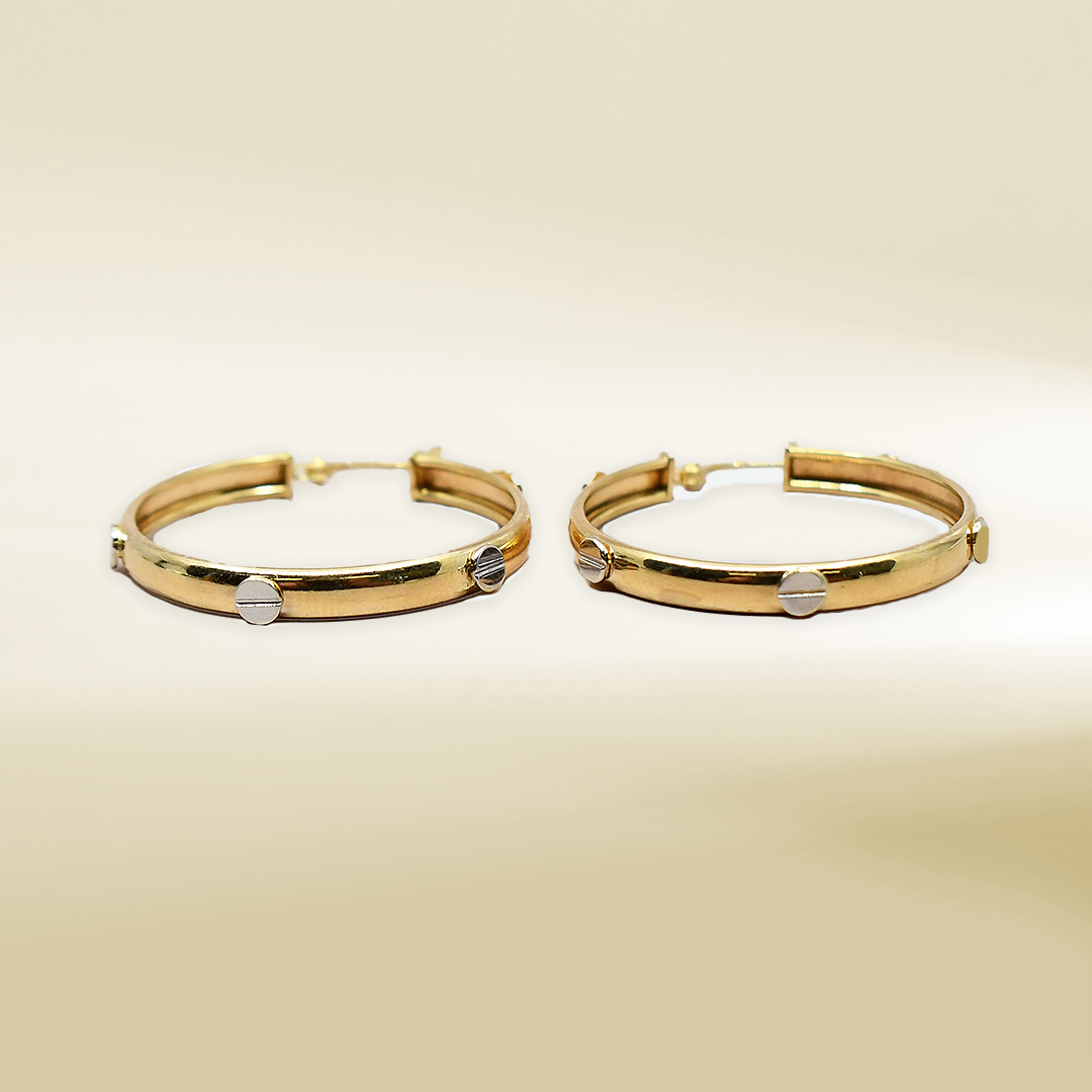 18K Two-tone Brand-Inspired Hoop Design Earrings