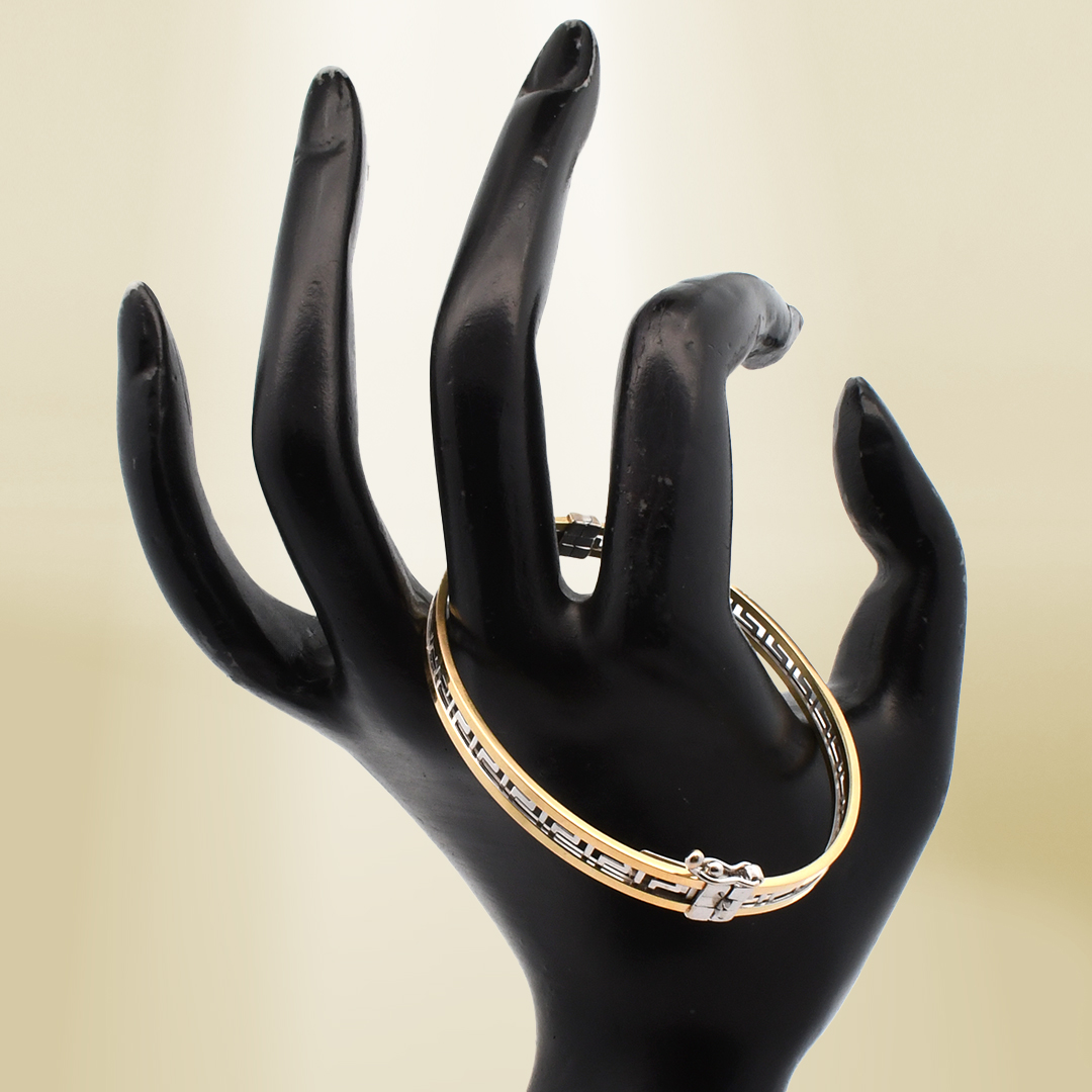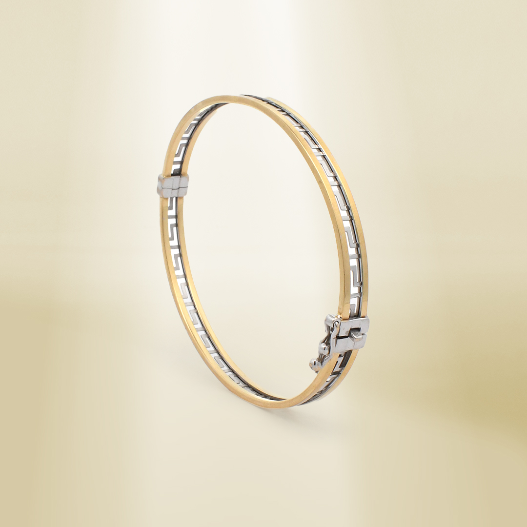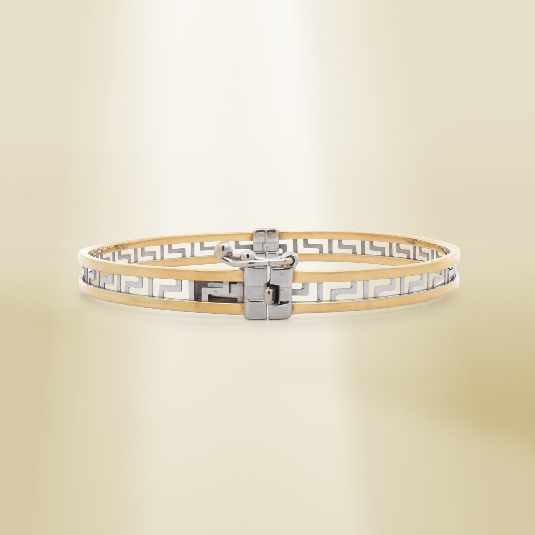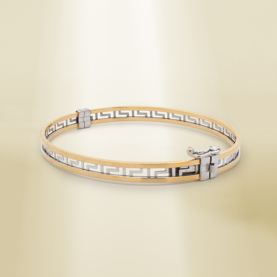 18K Two-Tone Clip Type Greek Pattern Bangle