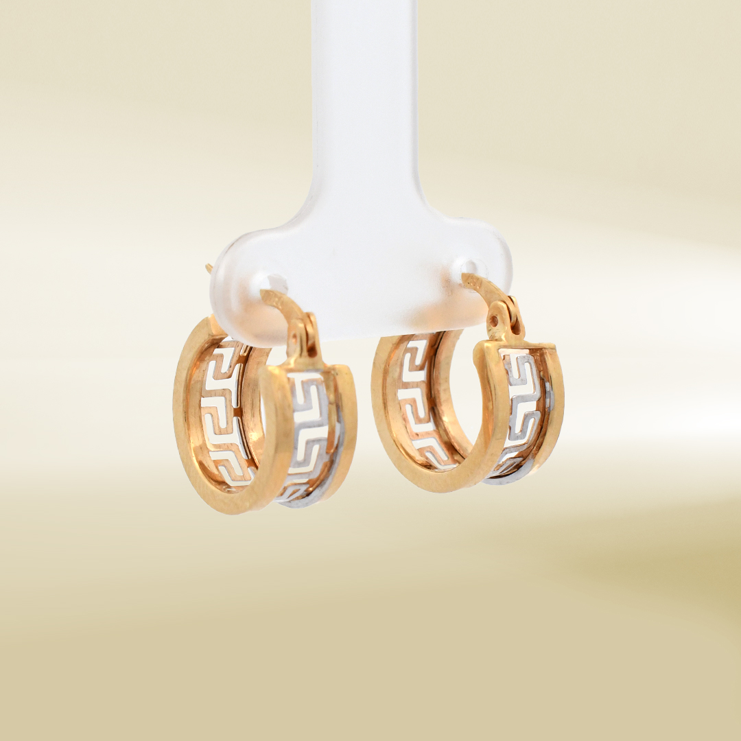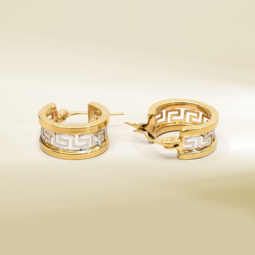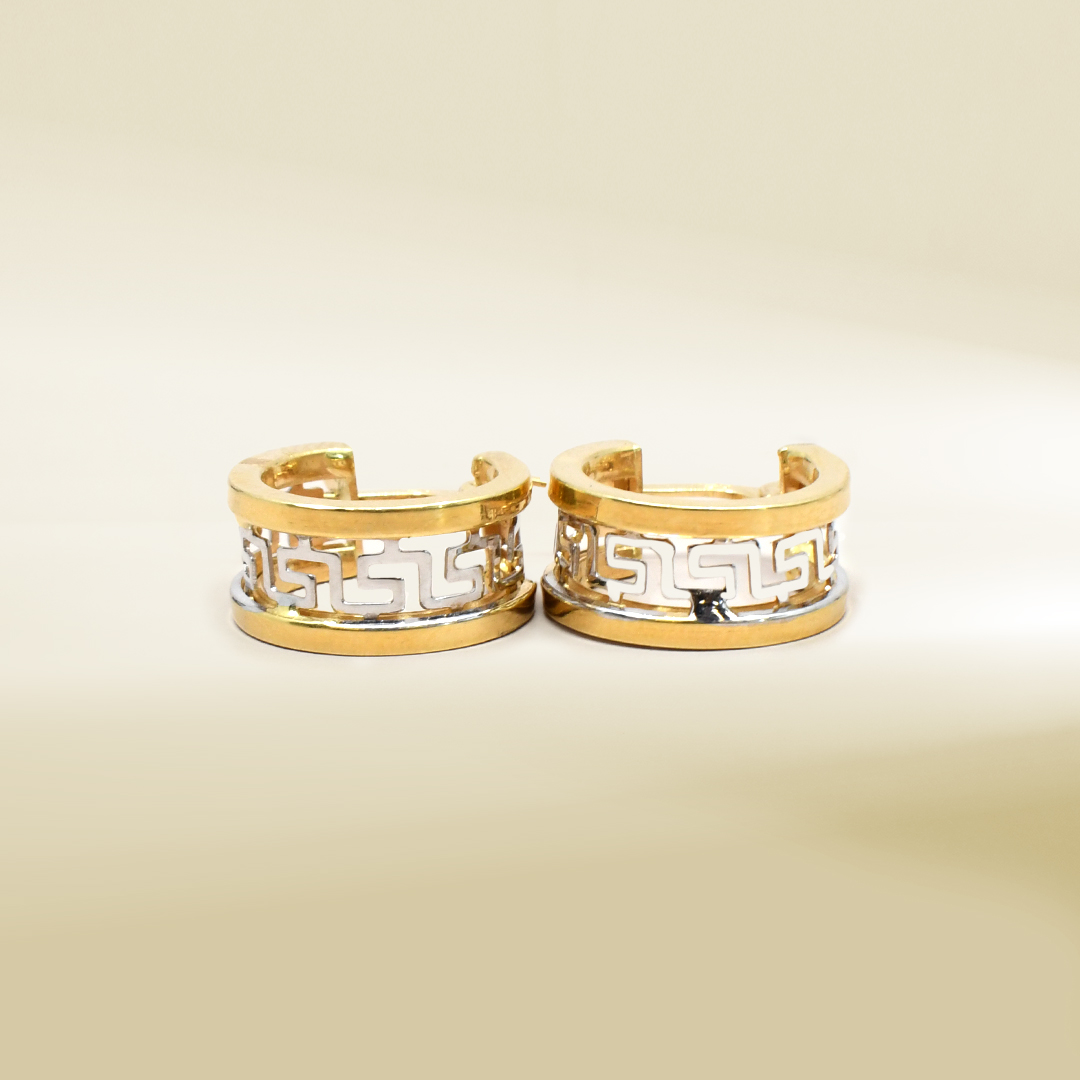 18K Two-Tone Hoop Design Earrings