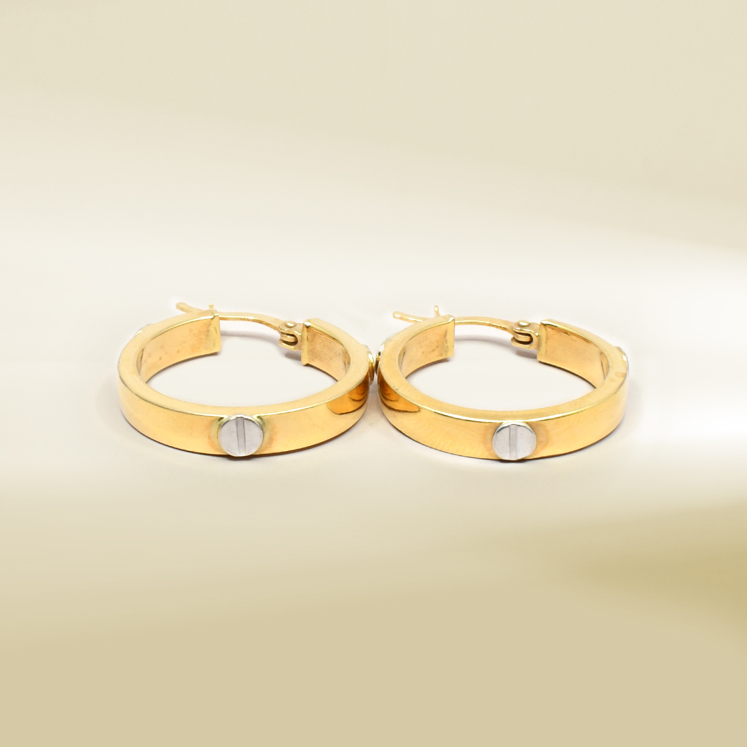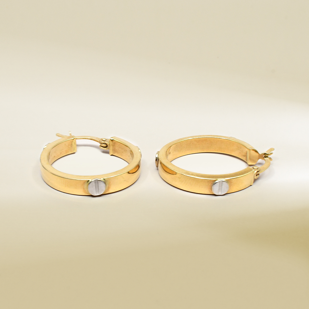 18K Two-Tone Hoop Design Earrings