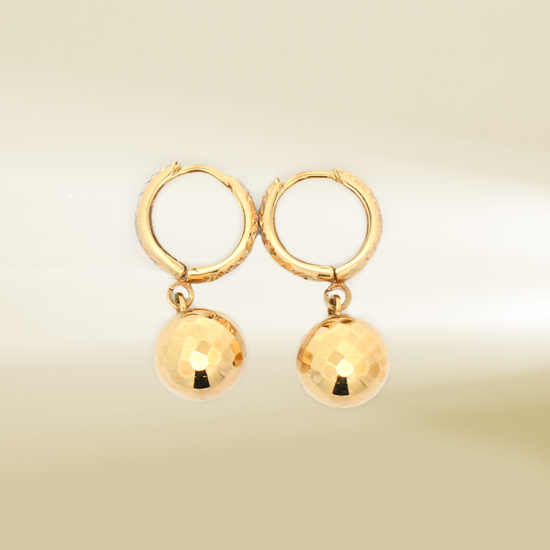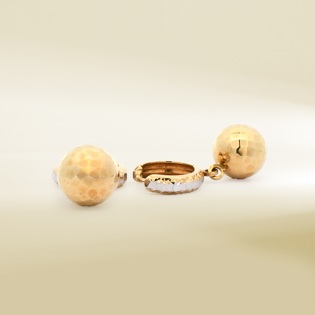 18K Two-Tone Mini Hoop with Ball Dangle Earrings