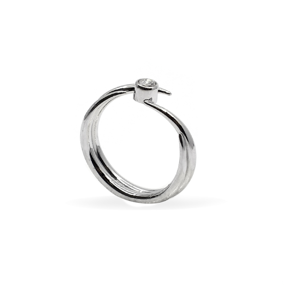 18K White Gold Ladies’ Ring with Round Cut, Single Stone Diamonds