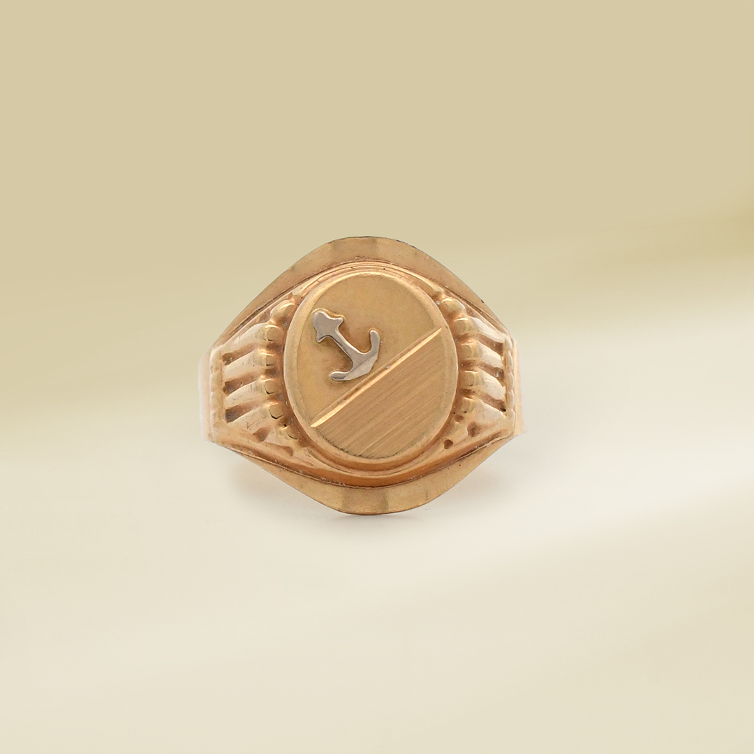 18K Yellow Gold Anchor Signet Design Gents’ Ring