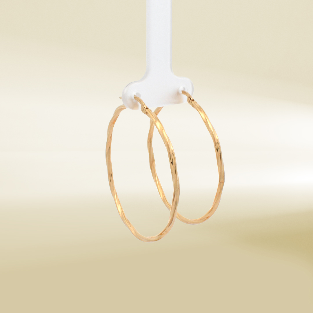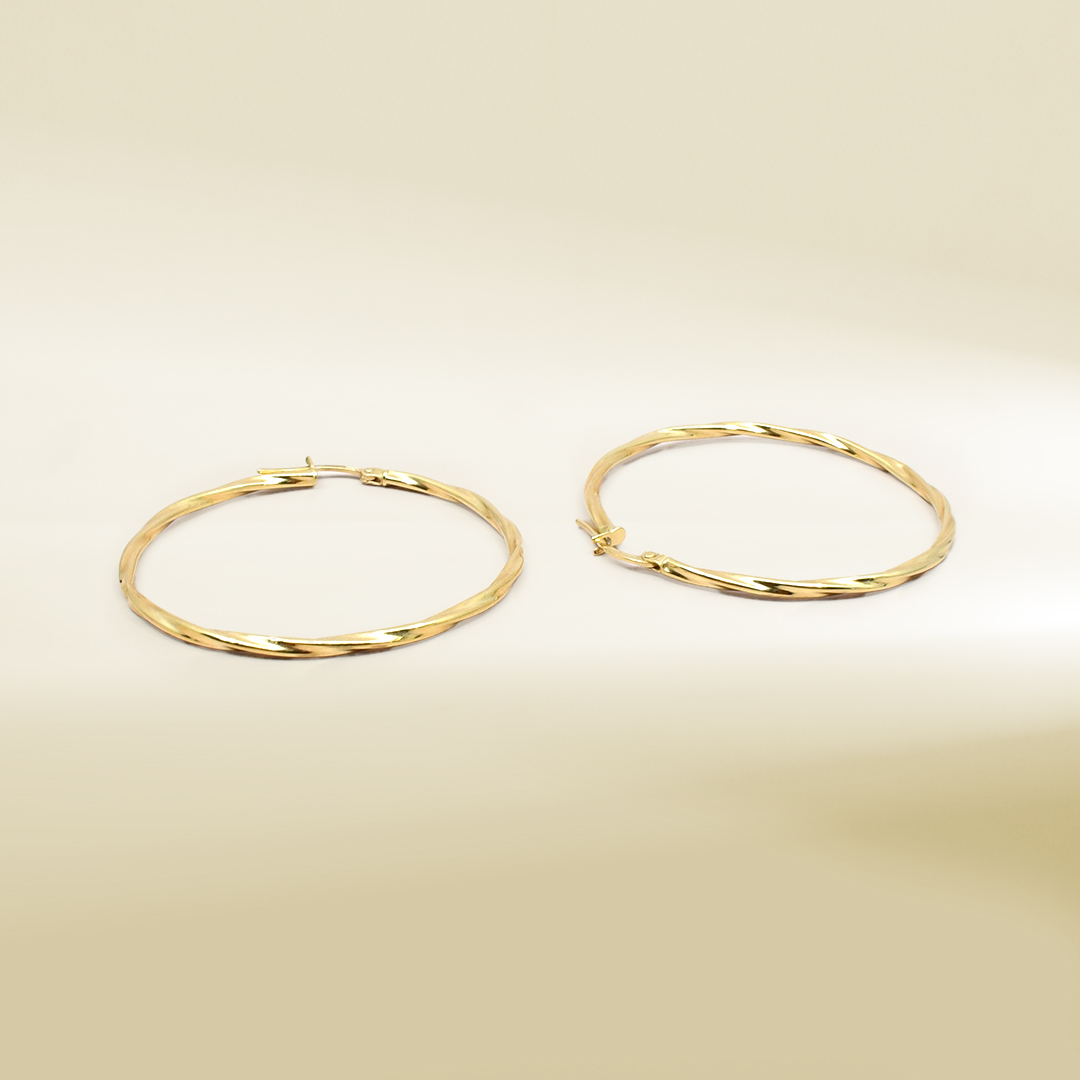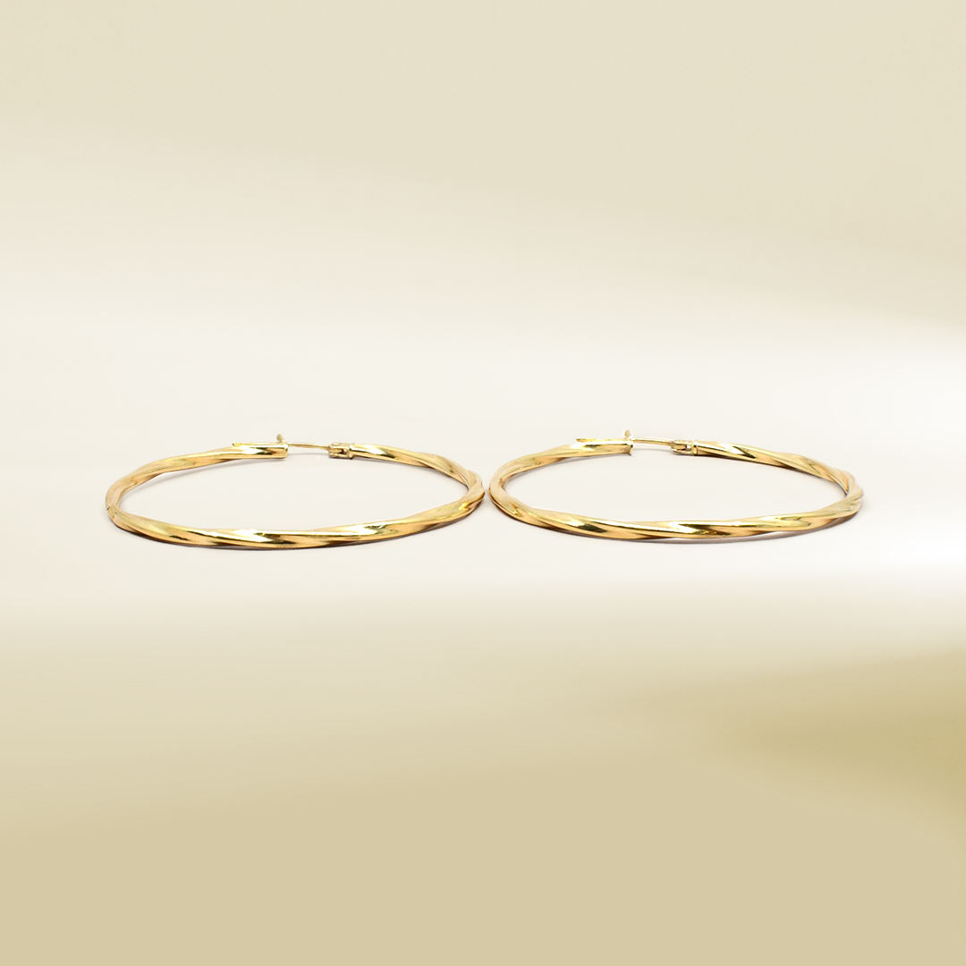 18K Yellow Gold Big Twisted Hoop Earrings