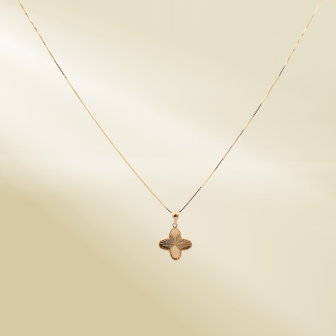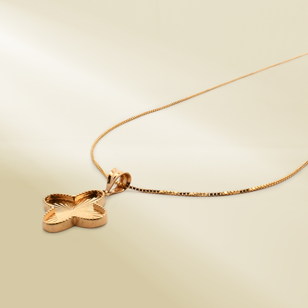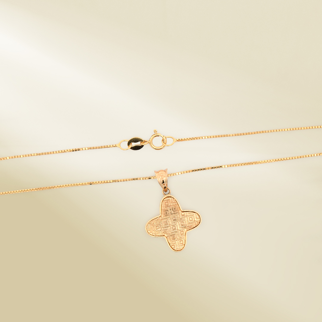 18K Yellow Gold Box Chain Necklace with Brand-Inspired Pendant