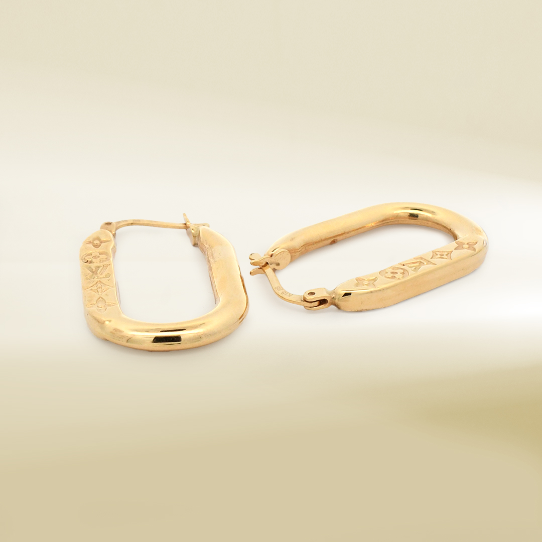 18K Yellow Gold Brand-Inspired Oval Shape Hoop Earrings