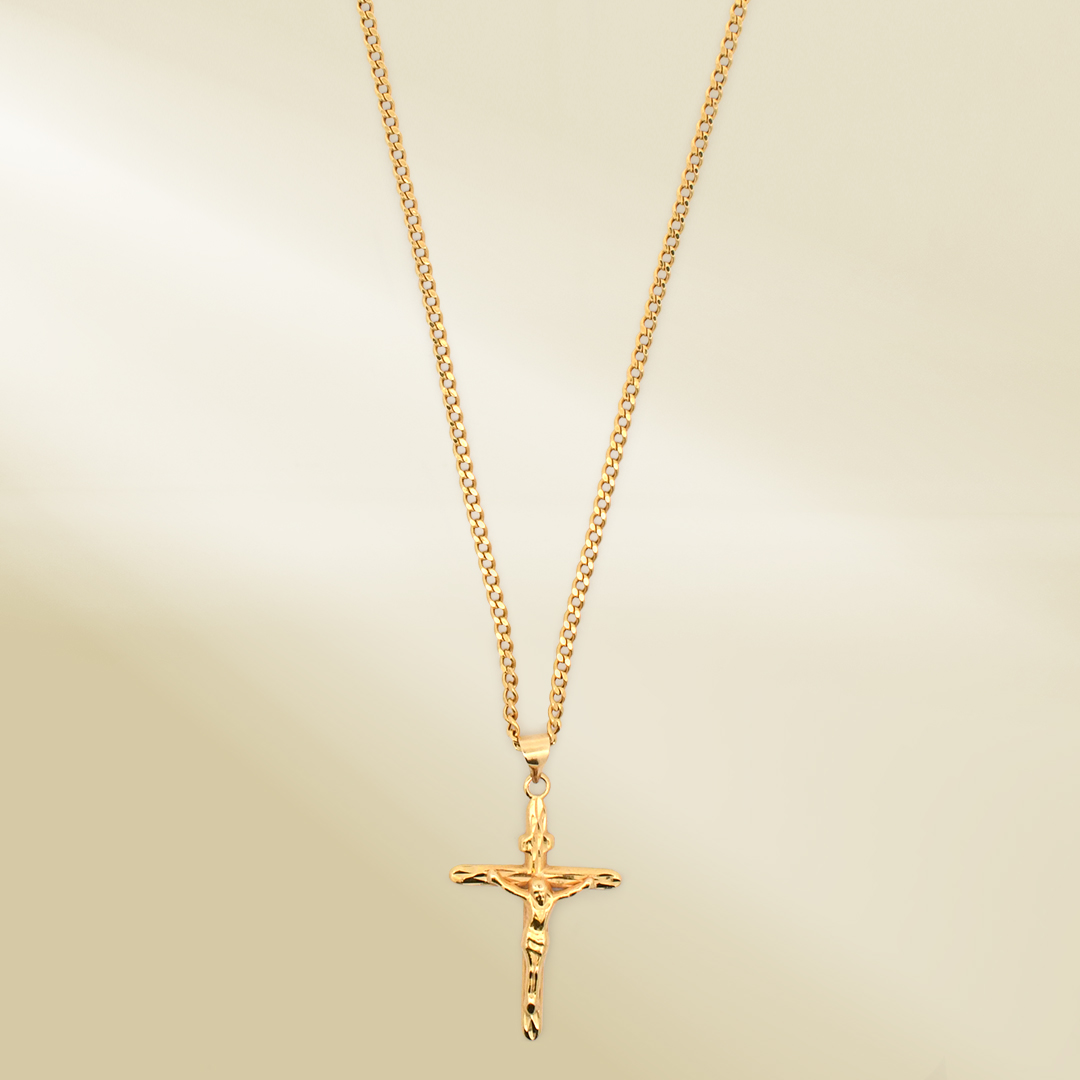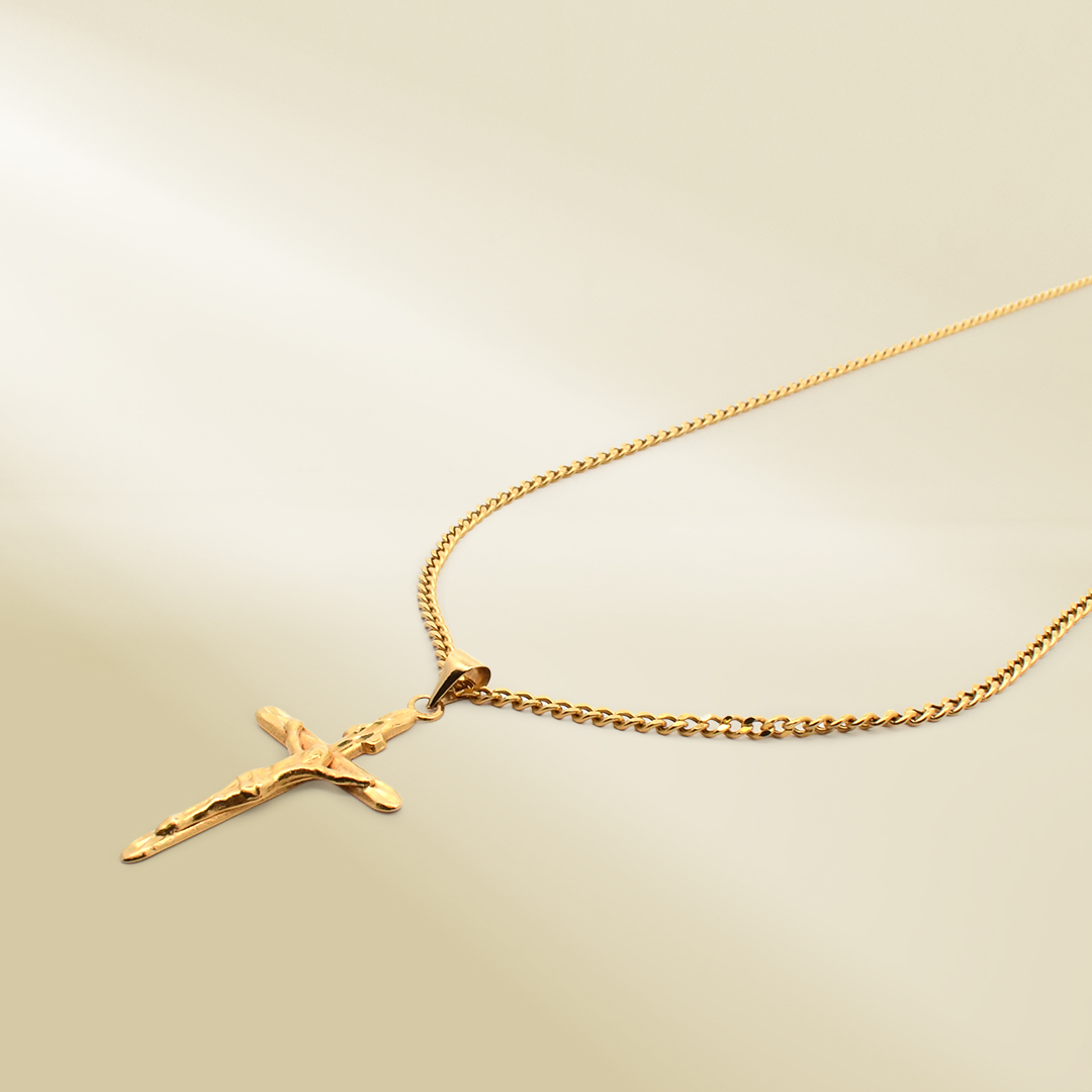 18K Yellow Gold Cable Chain Necklace with Cross Pendant