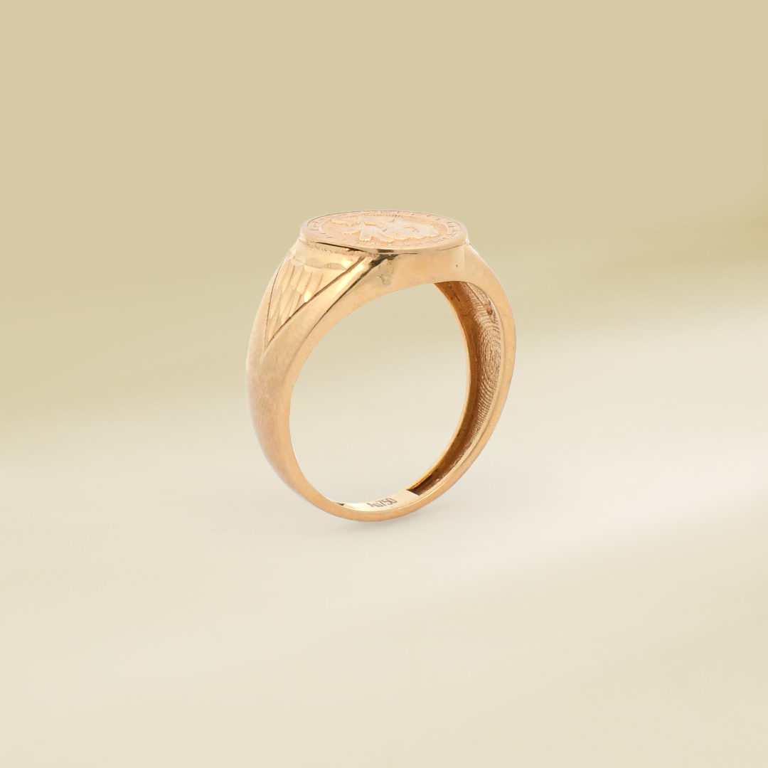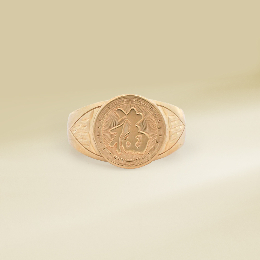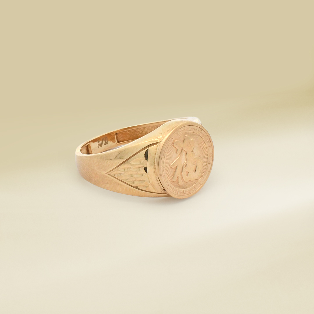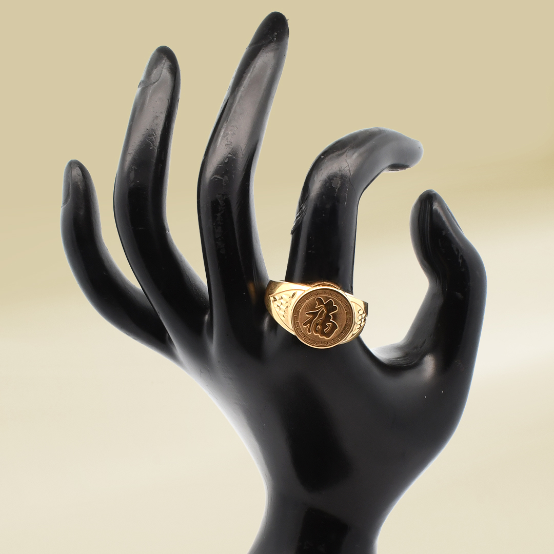 18K Yellow Gold Chinese Character Signet Design Gents’ Ring