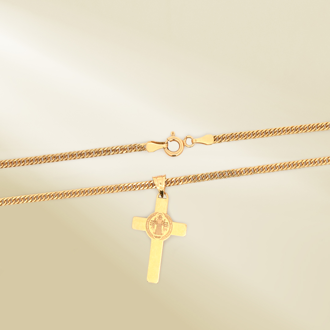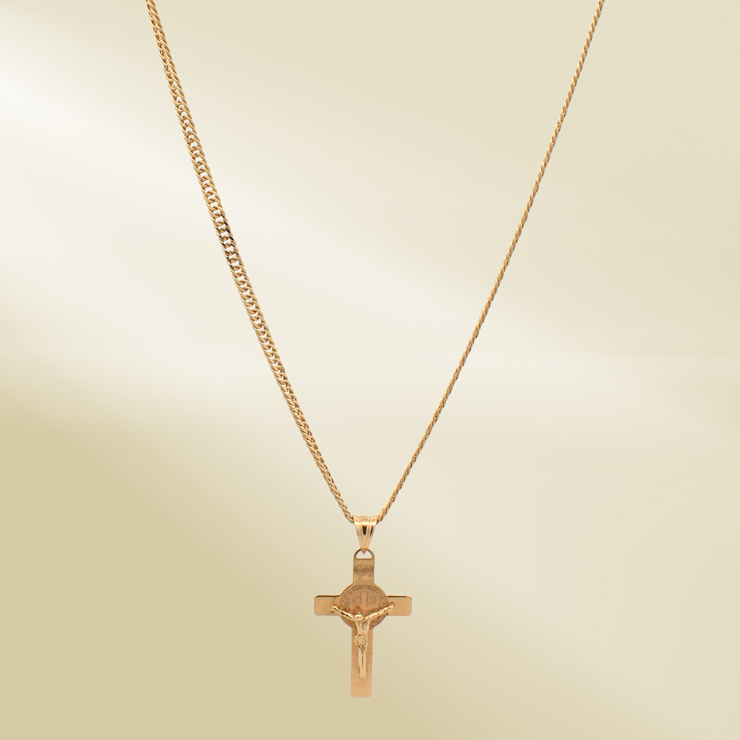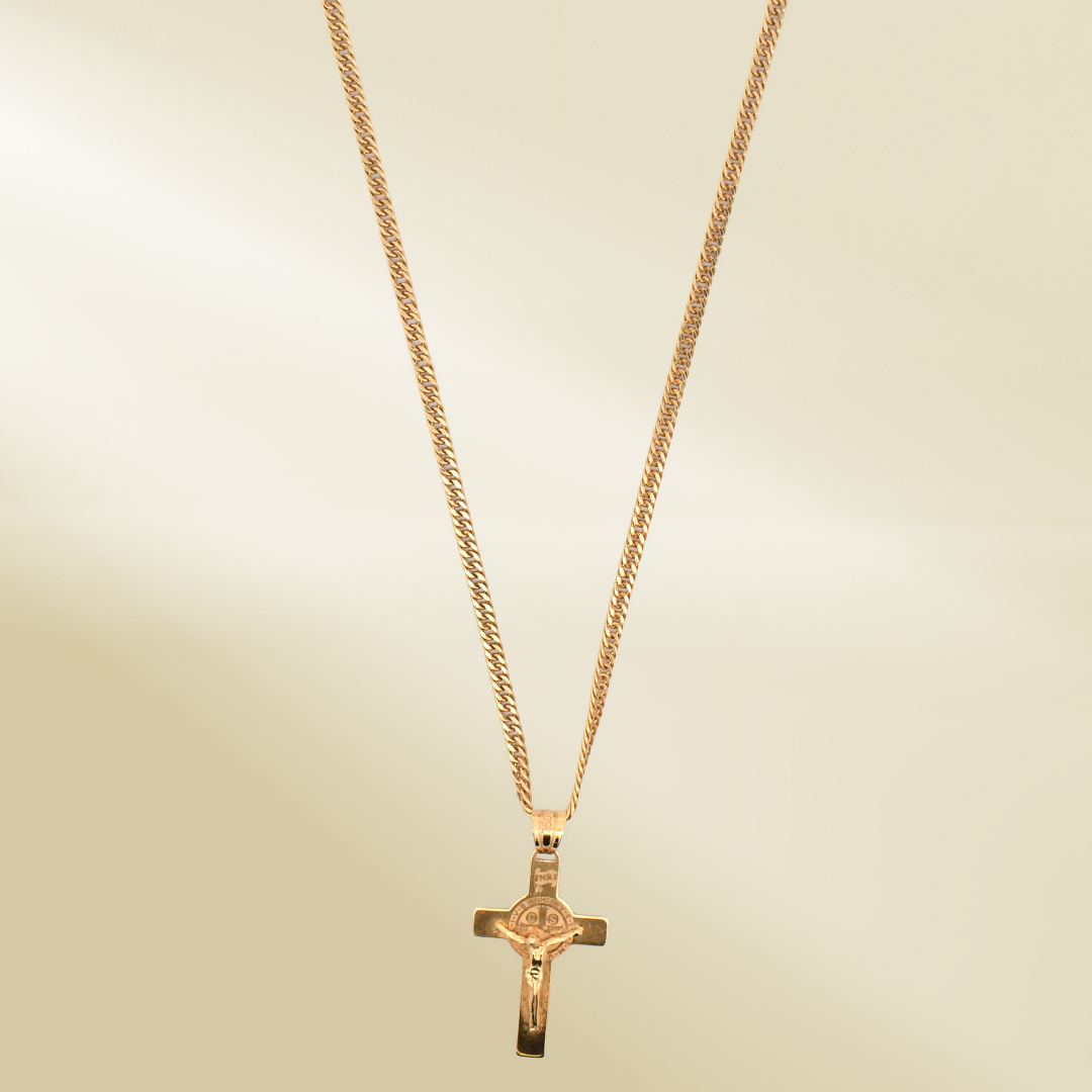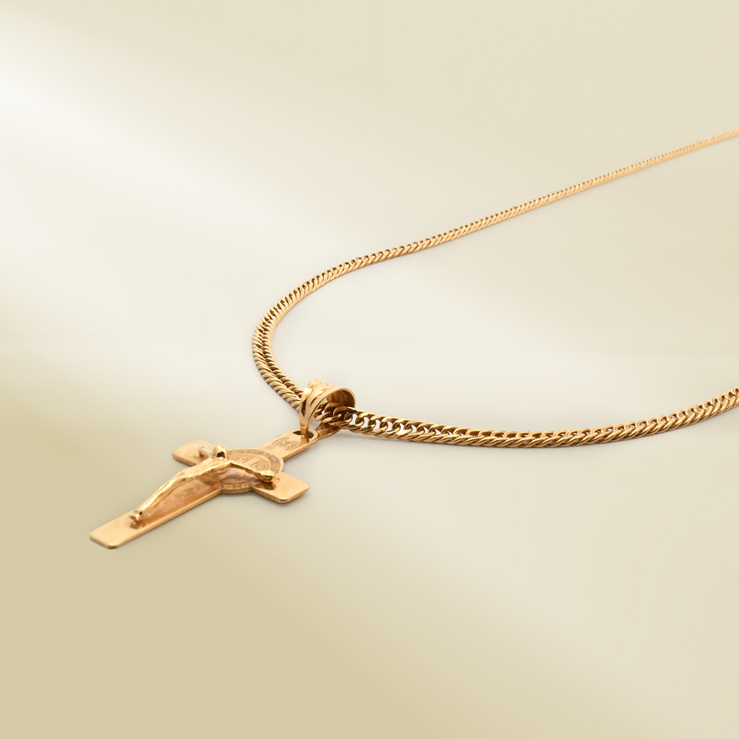 18K Yellow Gold Curb Chain Necklace with Cross Pendant