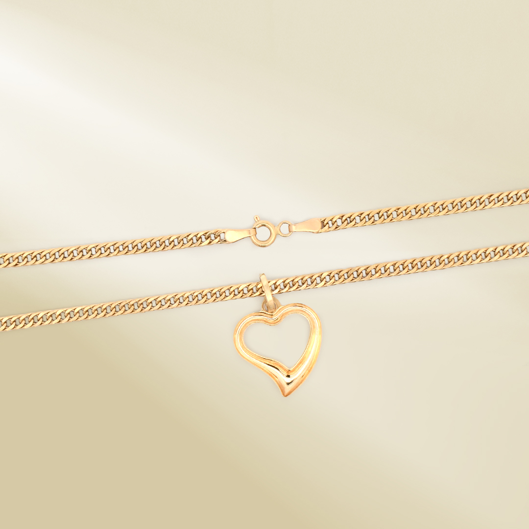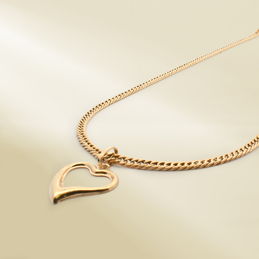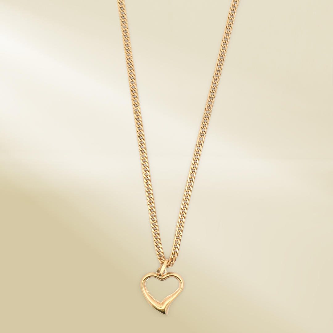 18K Yellow Gold Curb Chain Necklace with Heart Pendant