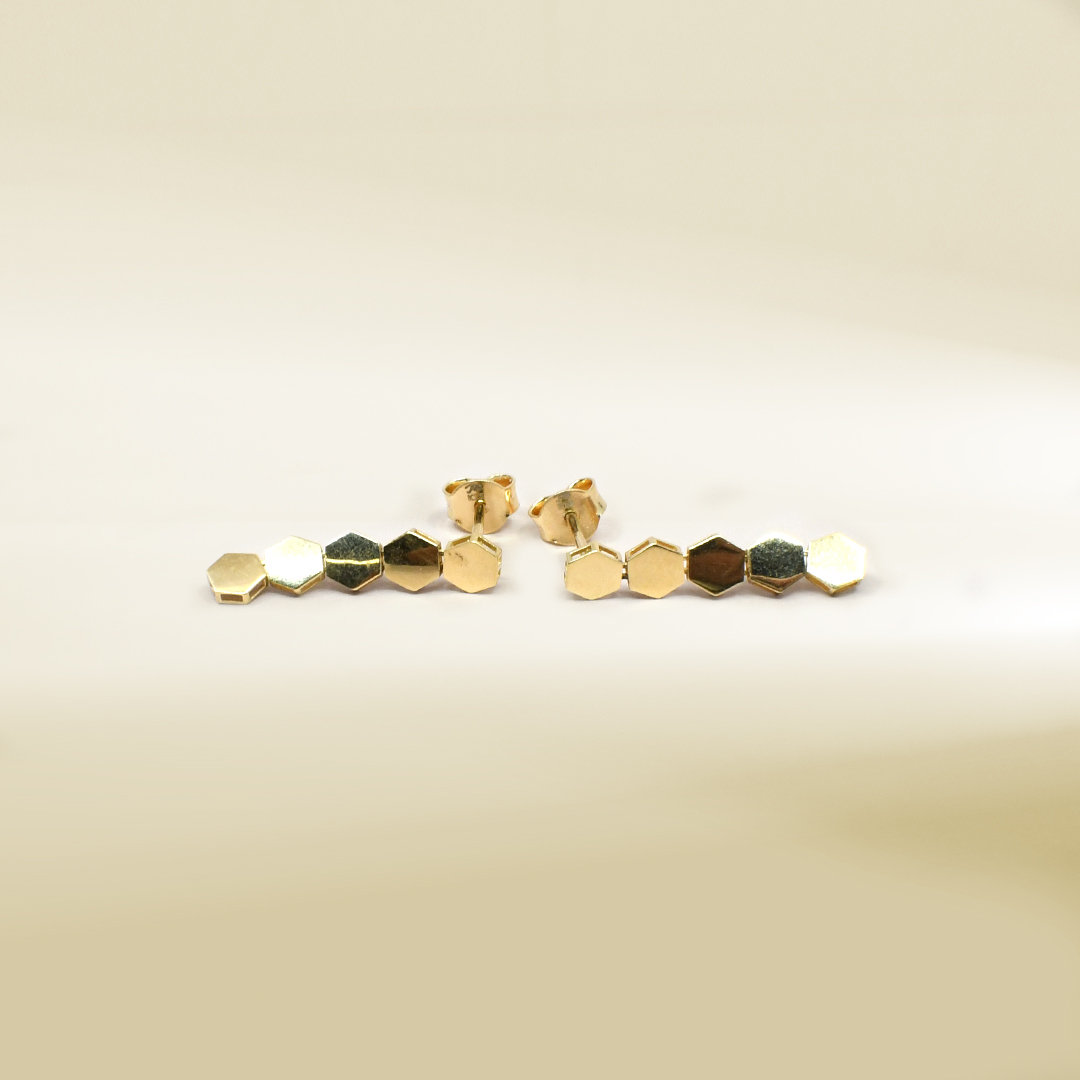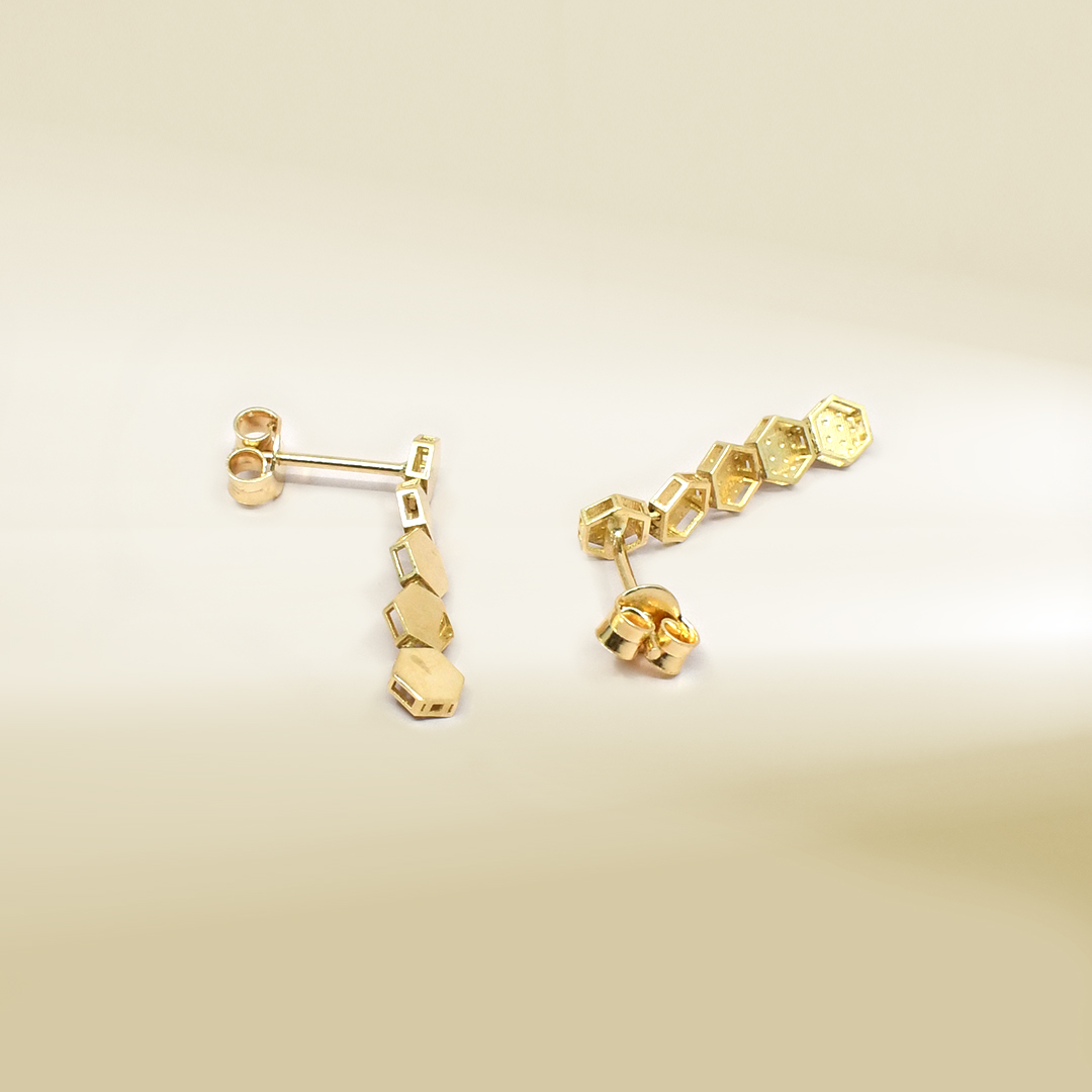 18K Yellow Gold Dangling Hexagon Shaped Earrings