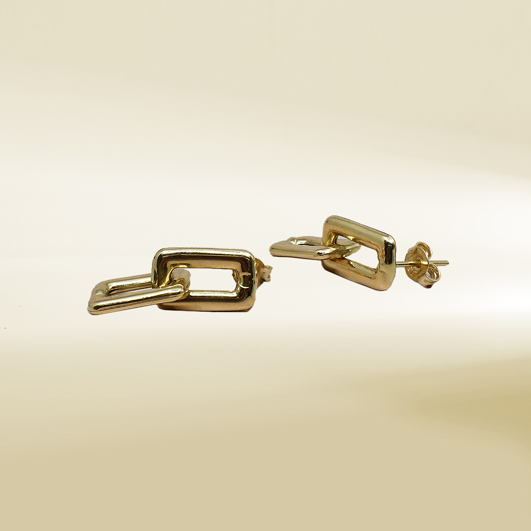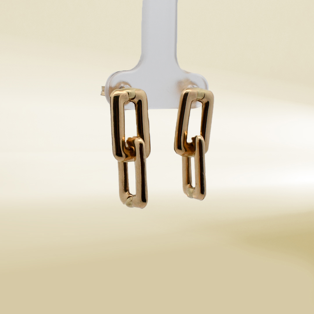 18K Yellow Gold Link Dangle Earrings