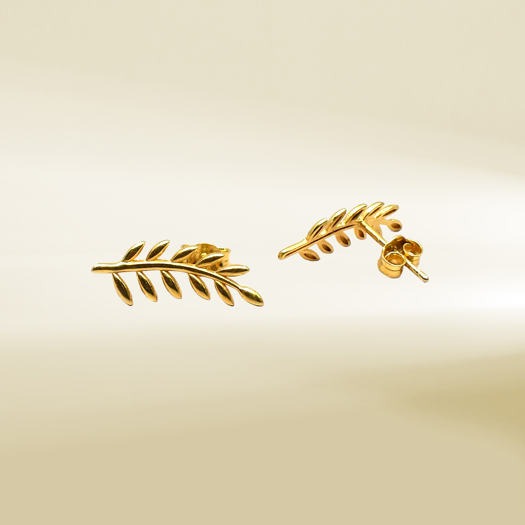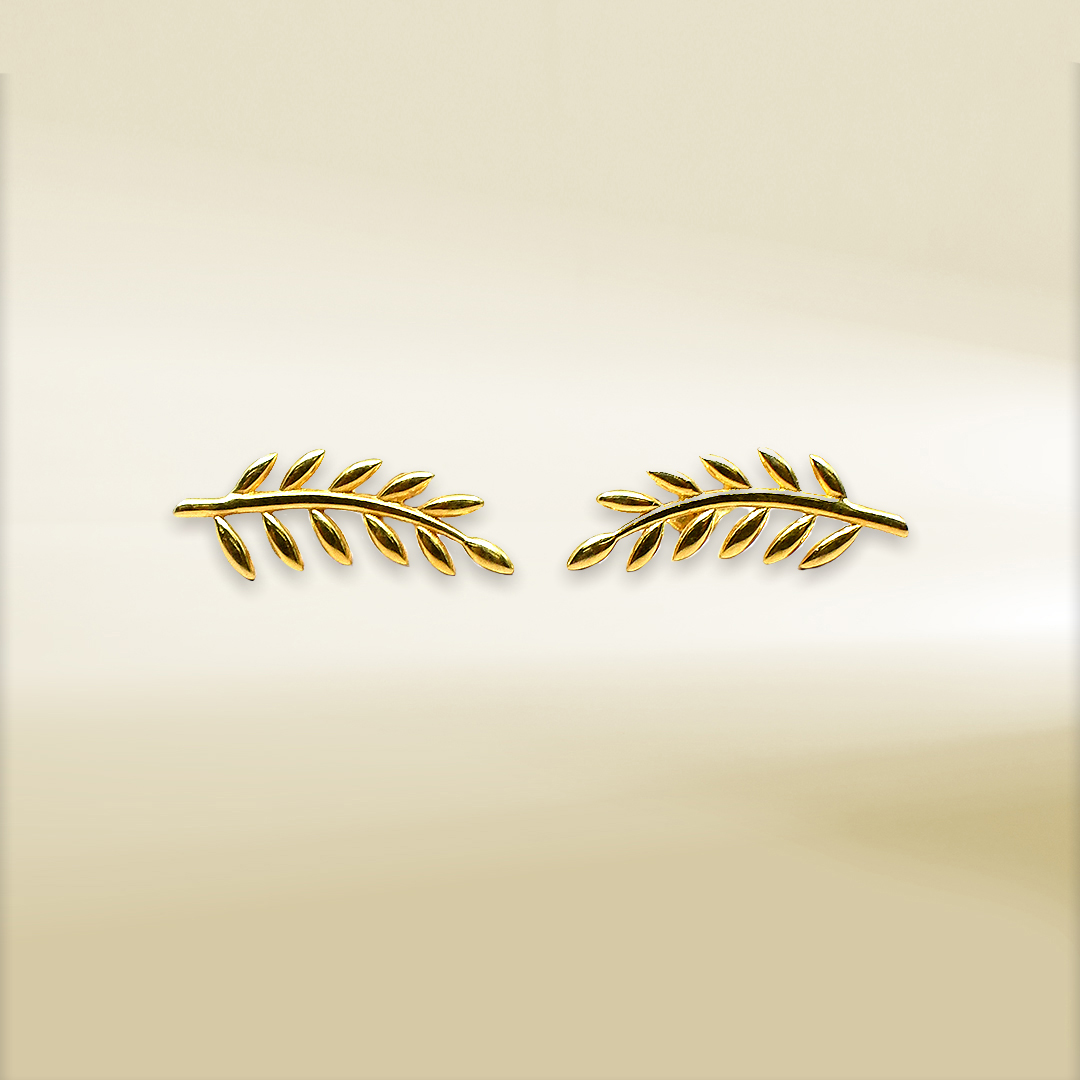 18K Yellow Gold Olive Branch Design Earrings