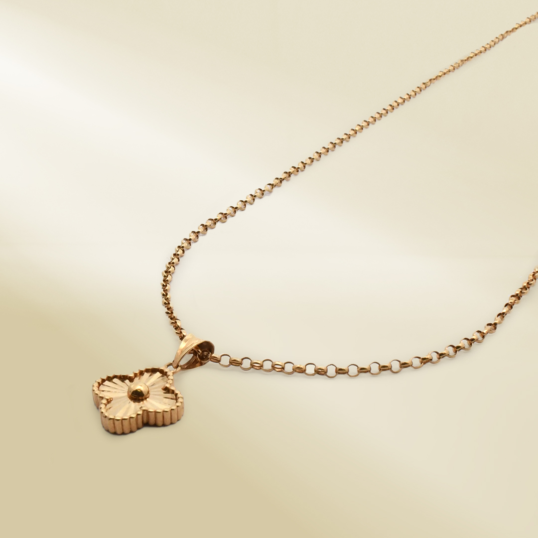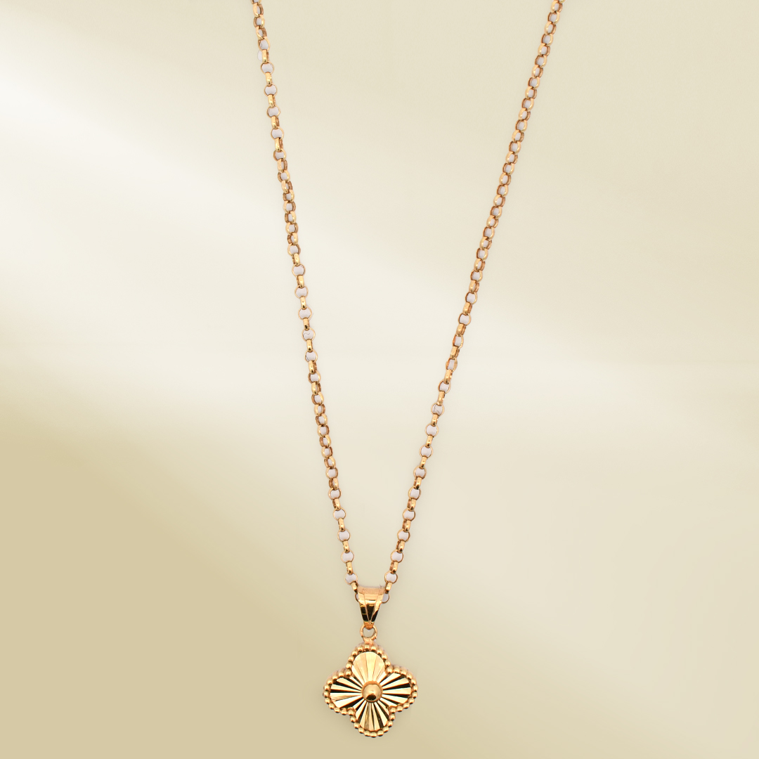 18K Yellow Gold Rolo Chain Necklace with Brand-Inspired Pendant