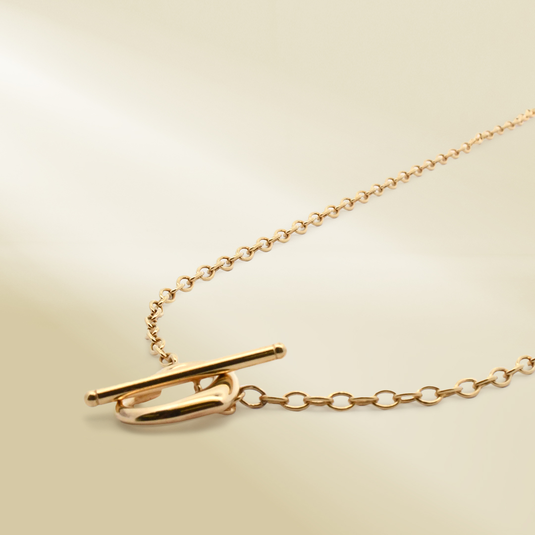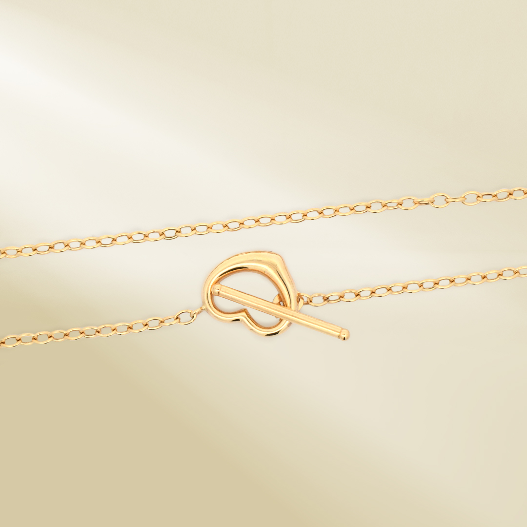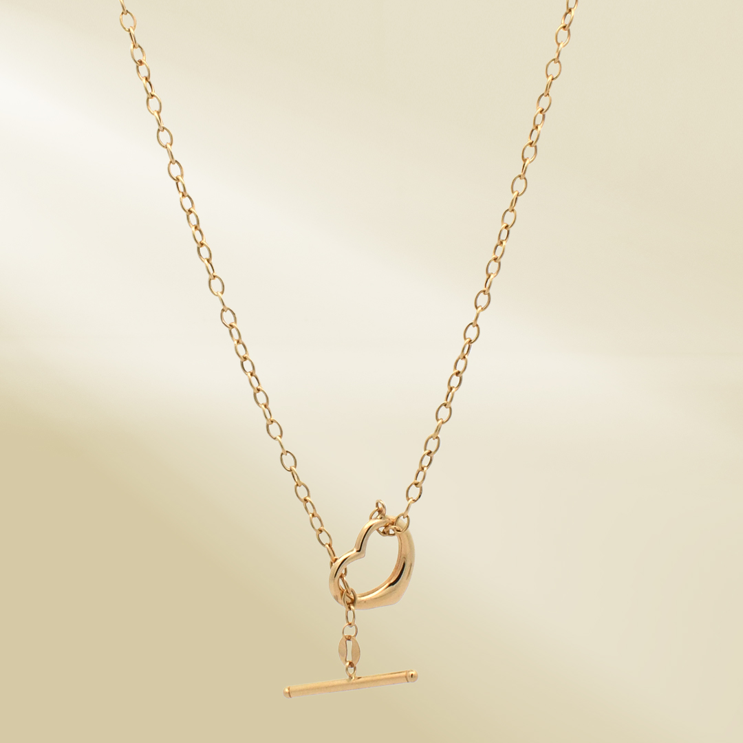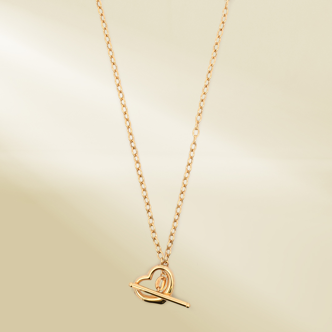 18K Yellow Gold Rolo Chain Necklace with Heart Toggle
