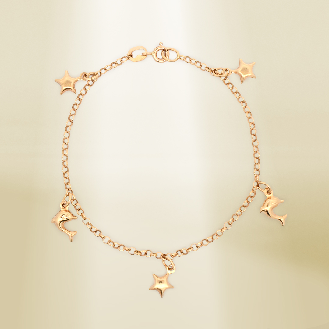 18K Yellow Gold Rolo Chain with Charms Bracelet