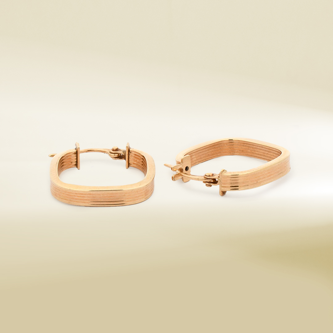 18K Yellow Gold Square Shape Hoop Earrings