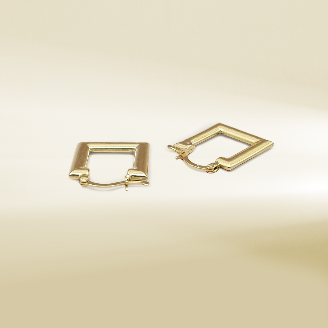18K Yellow Gold Square Shaped Hoop Earrings