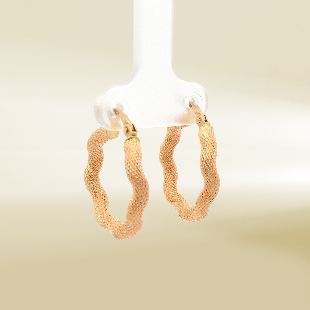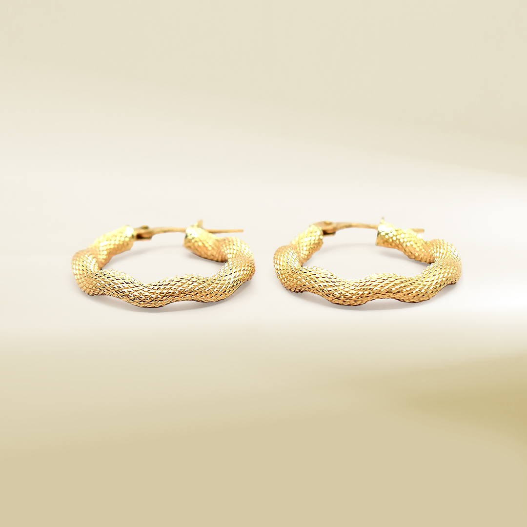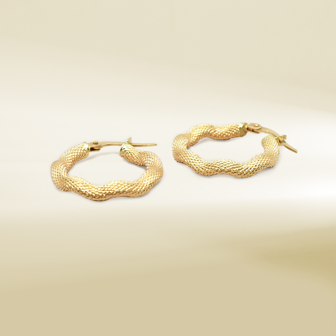 18K Yellow Gold Textured Twisted Hoop Earrings