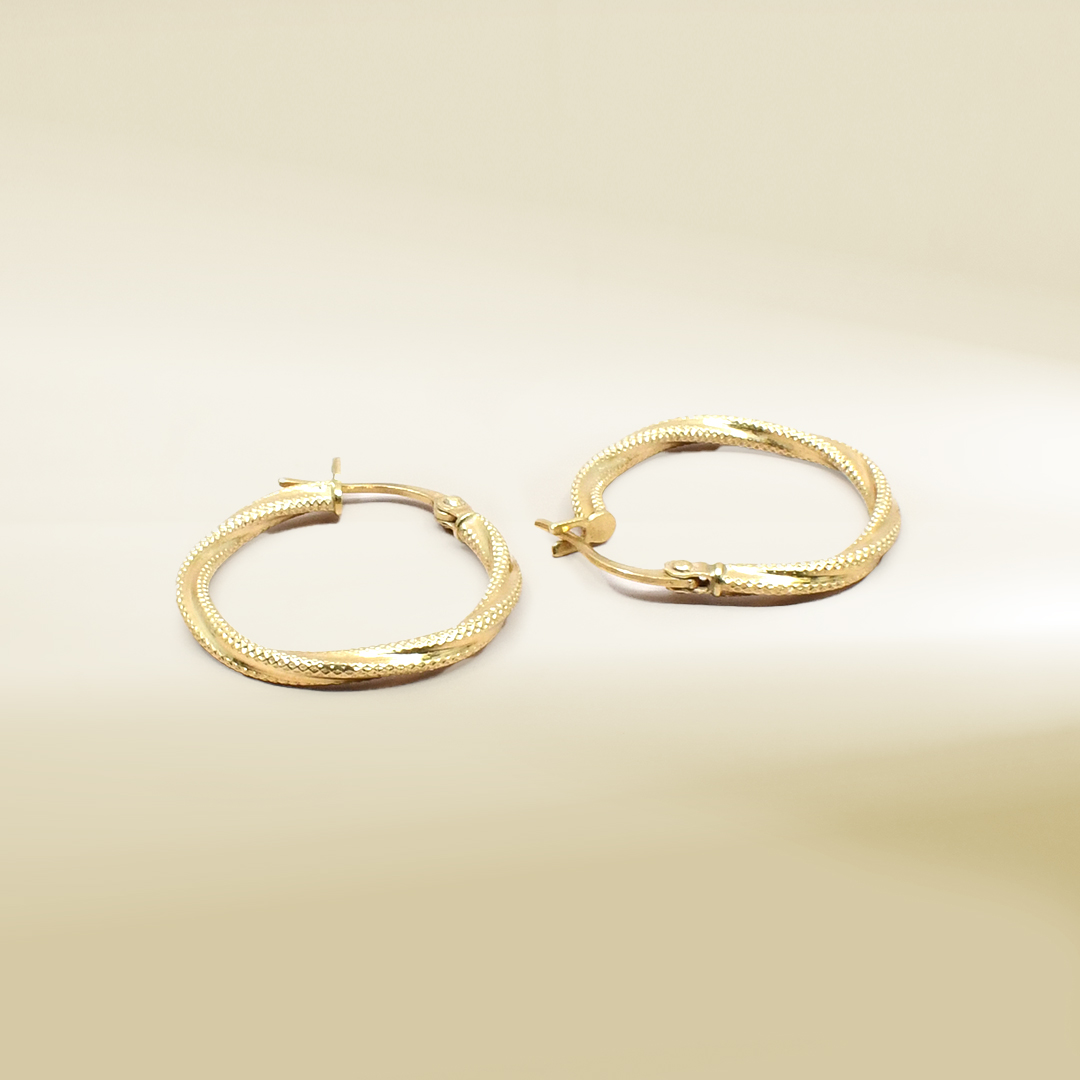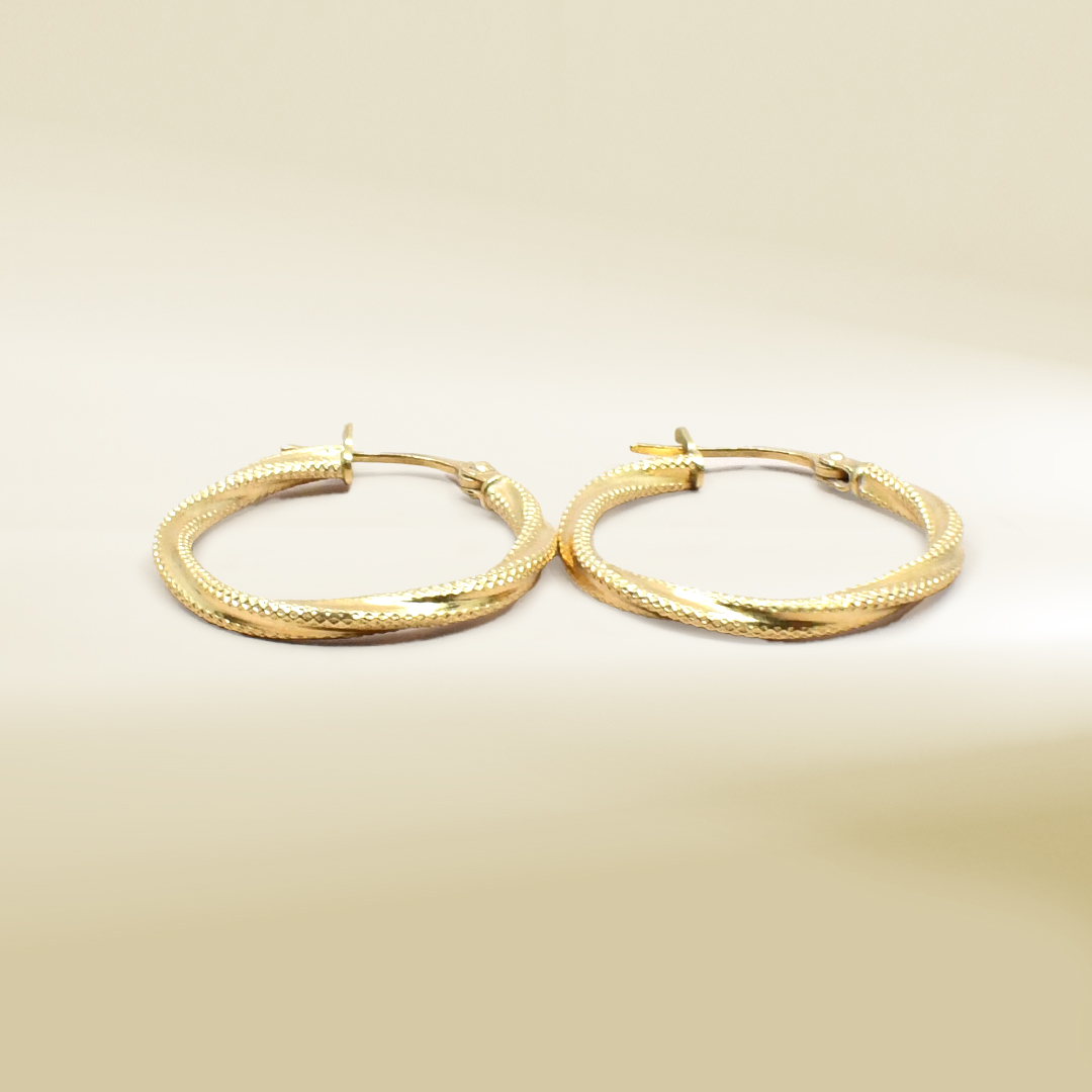 18K Yellow Gold Twisted Hoop Earrings