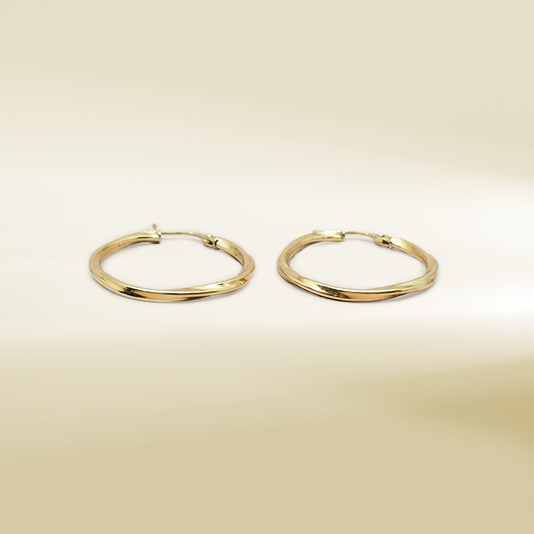 18K Yellow Gold Twisted Hoop Earrings